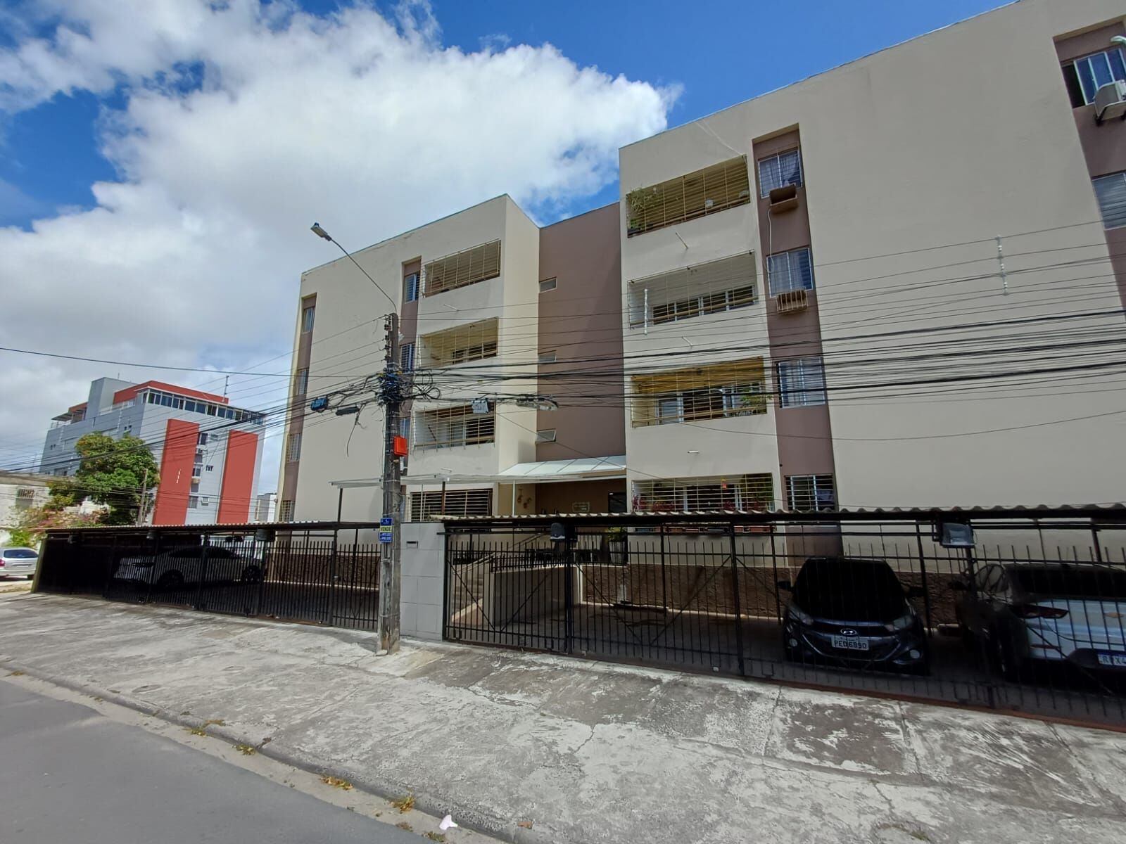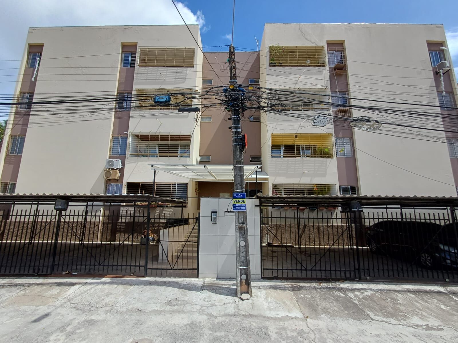 Prédio tipo caixão, 3° andar, gradeado, pintado, possui garagem coberta, portão eletrônico, interfone e poço artesiano.
